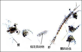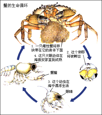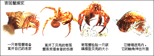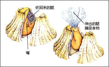 在许多海岸,有大量的藤壶覆盖在岩石上,博物学家一度认为这些动物是软体动物,但是它们实际上是甲壳动物,其形态是适应其特殊的生活方式的。一只藤壶的生命是从很小的幼虫开始的,在它碰到岩石之前一直在海里漂流,以后它将自己固定在一个地点,从海水中过滤食物,并长出外壳,在壳中度过它生命的其余时间。 |