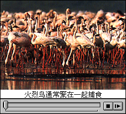 火烈鸟总是群居在一起,有时达到几千只之多。它们在盐湖的浅水区,将嘴探入水下,用嘴过滤出海藻和水中的小动物。它们的舌头将水推入嘴中,嘴中板状的薄片结构就能将水中的食物过滤下来。