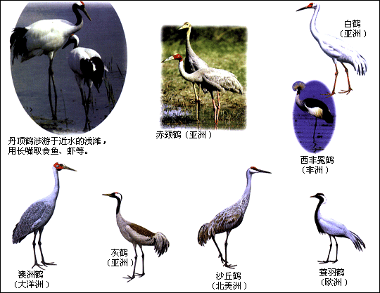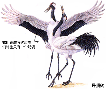 鹤长着一双非常长的腿,它是世界上最高的飞行鸟类,印度鹤可以达到1.76米高。鹤用它们像喇叭一样嘹亮无比的叫声相互应和,传递信息。在鹤的体内,长长的气管在胸腔里盘绕起来,这被认为可以起到"扩音器"的作用。鹤的舞姿同样十分优美,在求爱时它们更会拿出看家本领。