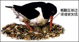 和许多涉水禽鸟一样,蛎鹬蛋的颜色和周围环境的颜色类似。蛎鹬通常将蛋生在河岸边的浅洞里,这些梨形的蛋很好地靠在一起。当小蛎鹬破壳而出时,它们绒毛的颜色也和周围的环境差不多。它们一经孵化就必须自己觅食。