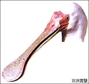 篦鹭的嘴又长又直又扁,嘴前端宽宽的,有匙突。和靠视力发现食物的黄鹭不同,篦鹭靠的是触觉。它们在浅水区左右摇晃着自己的长嘴,靠上面特殊的触觉细胞来发现小鱼等食物。