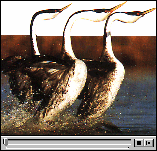 这几只西方鸊鷉正在跳舞。在鸊鷉配好对以后,它们便一起跳着舞游过湖去。雄鸊鷉往往想偷走别的雄鸊鷉的舞伴! |