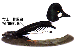 大小:46~50厘米;栖息地:夏天在内陆河旁的森林里,冬天在内陆湖中;分布:北美和亚洲;繁殖:雌鸭在着朽木和绒毛的树洞里,一次产下8~12个蛋;食物:水生贝壳类动物、甲壳动物以及昆虫 |